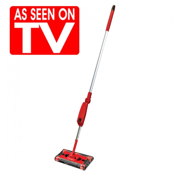 Рассмотрим его первое преимущество — компактность, удобство, новизна. Для начала, стоит разобраться в подготовке к использованию Swivel Sweeper G2. Изначально прибор состоит из нескольких предметов, которые нужно собрать во единое целое. Изначально нужно собрать держатель электровеника, вкручивая детали одну за другой, и не забудьте присоединить аккумулятор(ведь именно таким образом работает прибор), к которому прилагается зарядное устройство. От аккумулятора прибор сможет работать не менее 45 минут, после чего его нужно вновь подзарядить. Важнейшей деталью электровеника Свивел Свипер является непосредственно щетка-контейнер, оснащена щеточками по всему периметру. Эти щеточки просто притягивают пыль, мусор шерсть, которые в итоге попадают в мусоросборник, находящийся на дне этой детали. Контейнер с мусором довольно просто освободить, нажав лишь 2 кнопки на внешней панели. После предварительной подготовки Swivel Sweeper G2 к работе — просто включите прибор и с легкостью приступайте к уборке помещения. Теперь Вам никакого труда не составит уборка в труднодоступных местах, а так же, не придется наклоняться, чтобы убрать под шкафом, столом, другой мебелью, ведь ручка электровеника Свивел Свипер имеет свойство изгибаться под углом в девяносто градусов и все это опять-таки при нажатии лишь одной кнопки!