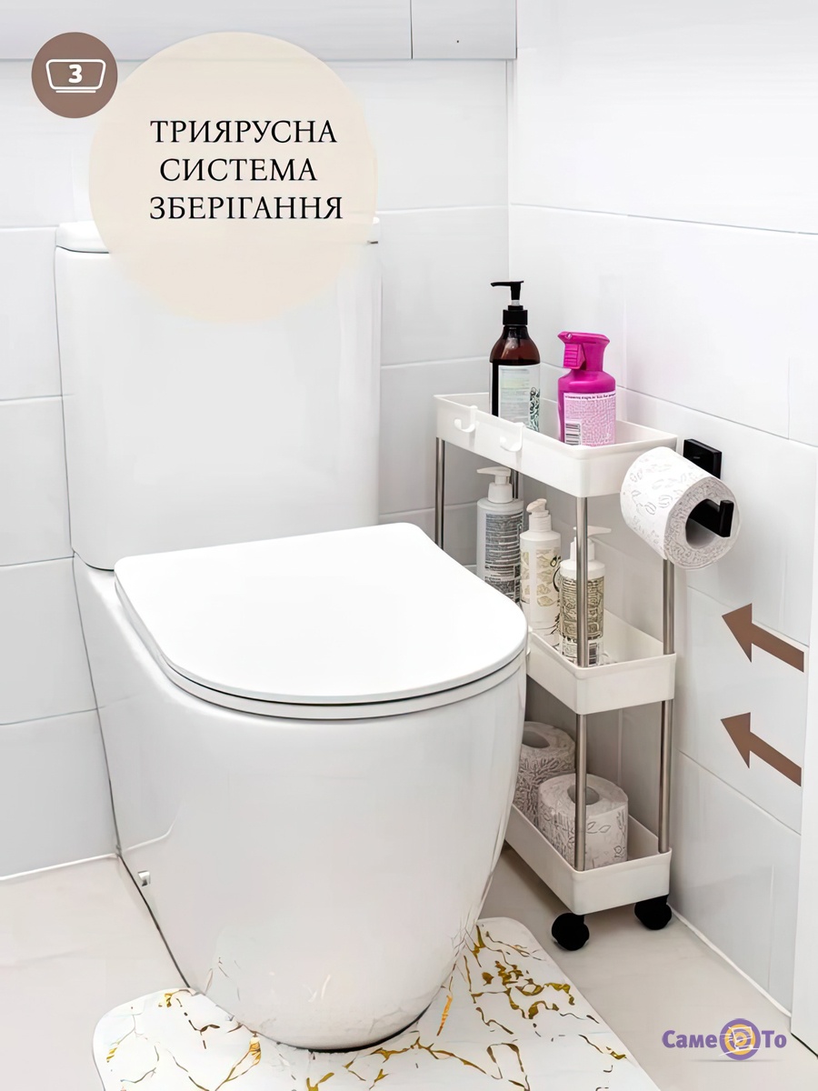 Не пропустіть можливість вдосконалити вашу ванну кімнату з цією зручною і функціональною етажеркою на колесах. Вам більше не доведеться турбуватися про зберігання та організацію ваших речей у ванній.