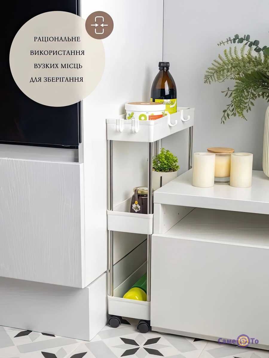 Етажерка у ванну на 3 полиці з колесами – ідеальне рішення для вашої ванної кімнати. Ця стильна та зручна полиця забезпечує додатковий простір для зберігання, дозволяючи вам організувати ваші ванни та аксесуари так, як вам зручно.