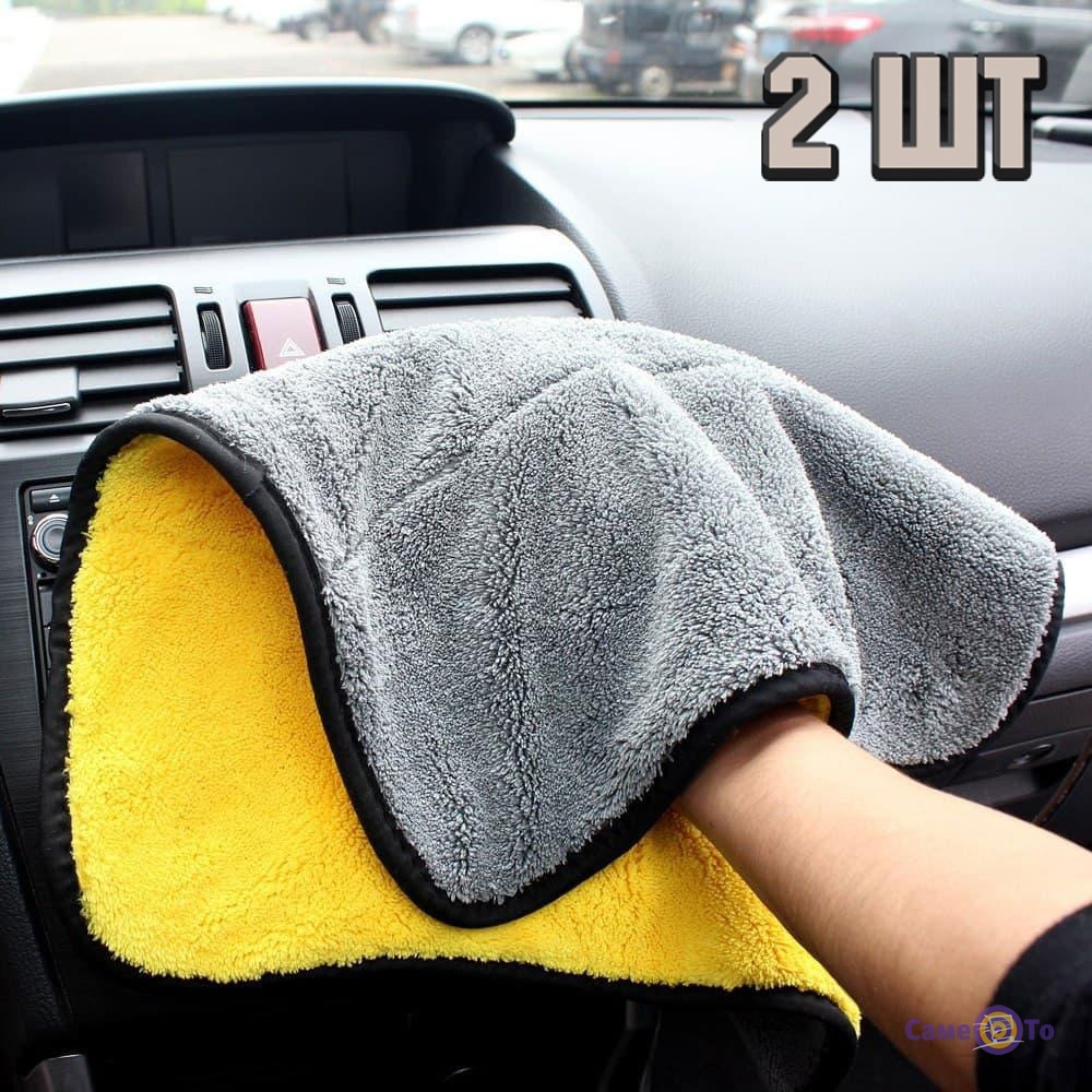 Тряпка из микрофибры для полировки авто, серо-желтое 39х30 см 2 штуки
