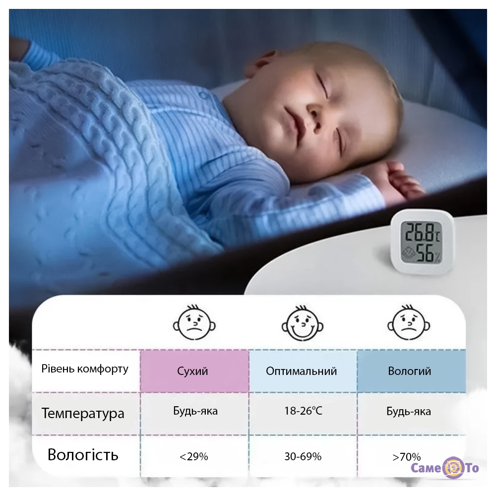 Моніторинг вологості: Гігрометр YS26 надає надійну інформацію про вологість повітря в кімнаті. Це важливо для підтримки оптимального рівня вологості, особливо в дитячій, щоб забезпечити здоров'я та комфорт вашої дитини.