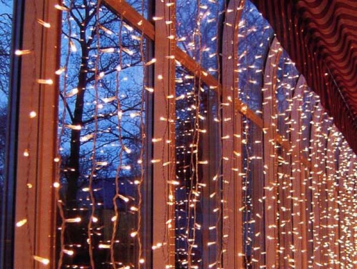 Украсьте LED гирляндой большое окно или веранду в вашем загородном доме. Удивите друзей подсветив таким декором целую стену в гостиной. У вас свой магазин? Внимание покупателей обязательно привлечет LED дождь на вашей витрине. С удовольствием прохожие зайдут в ресторан, кафе или бар, увидав яркие огни светового занавеса на дверях или окнах заведения. Интересным решением будет подсветка колоны на входе в помещение с помощью гирлянды "дождь".