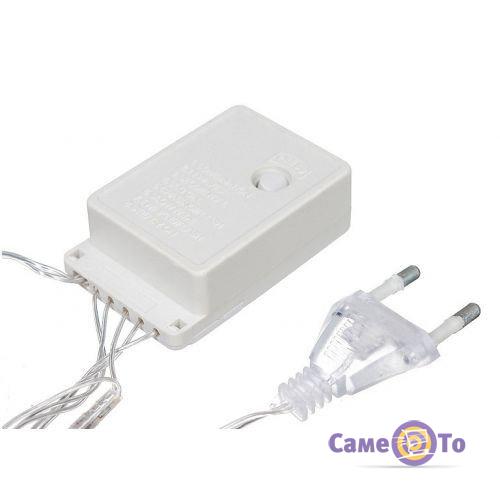 Світлодіодна гірлянда працює від звичайної електричної мережі 220В. Вона дуже економно споживає електричну енергію і може горіти цілодобово без відключення. Це не вплине яким-небудь значним чином на розмір вашого рахунку за електрику. Вихід з ладу однієї або декількох ламп не позначиться на роботі всього приладу.