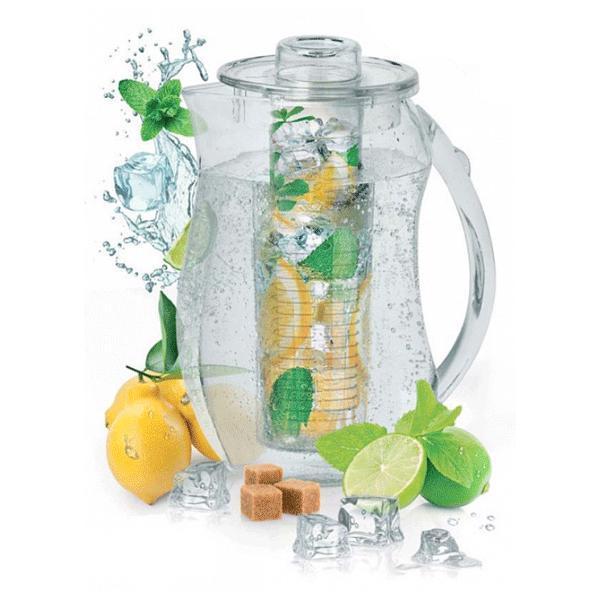 Цей глечик допоможе вам порадувати своїх близьких освіжаючими фруктовими напоями або теплими і корисними трав'яними чаями. Такий глечик має всередині спеціальну посудину, яку можна заповнити свіжими фруктами, льодом або травами. Завдяки спеціальним отворам всередині контейнера, глечик заповнюється свіжим фруктовим соком, при цьому уникаючи попадання м'якоті або самих фруктів всередину. За допомогою цього контейнера можна заповнити ємність льодом, який буде повільно танути і підтримувати приємну прохолоду напою протягом усього застілля.