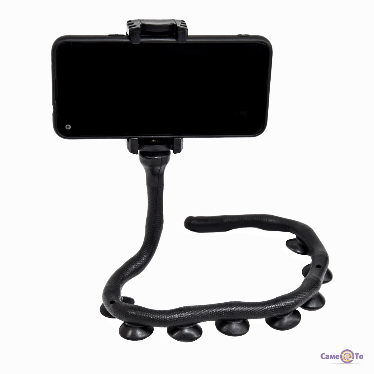 Якщо ви часто їздите в машині або любите дивитися фільми з телефону, але швидко втомлюєтеся тримати сам телефон, вам слід звернути увагу на гнучкий тримач з присосками для телефону. Тримач для телефонів - це потрібне пристосування, яке зможе тримати телефон під час перегляду улюблених фільмів. Такі присоски можуть прикріпитися до будь-якії полиці, на дереві, до монітора, парапету, до чого завгодно. А вбудований всередину пружинний стержень може зручно вигинатися під будь-яким підходящим вам кутом. Тримач для телефону гнучкий виготовлений для телефону з пластика і гуми. Зроблений в чорному кольорі. Також його зручно прикріпити на велосипед, під час їзди в автомобілі, брати з собою під час довгої подорожі для перегляду фільму. Важить тримач для телефона гнучкий всього 102 г по довжині дорівнює 48 см.