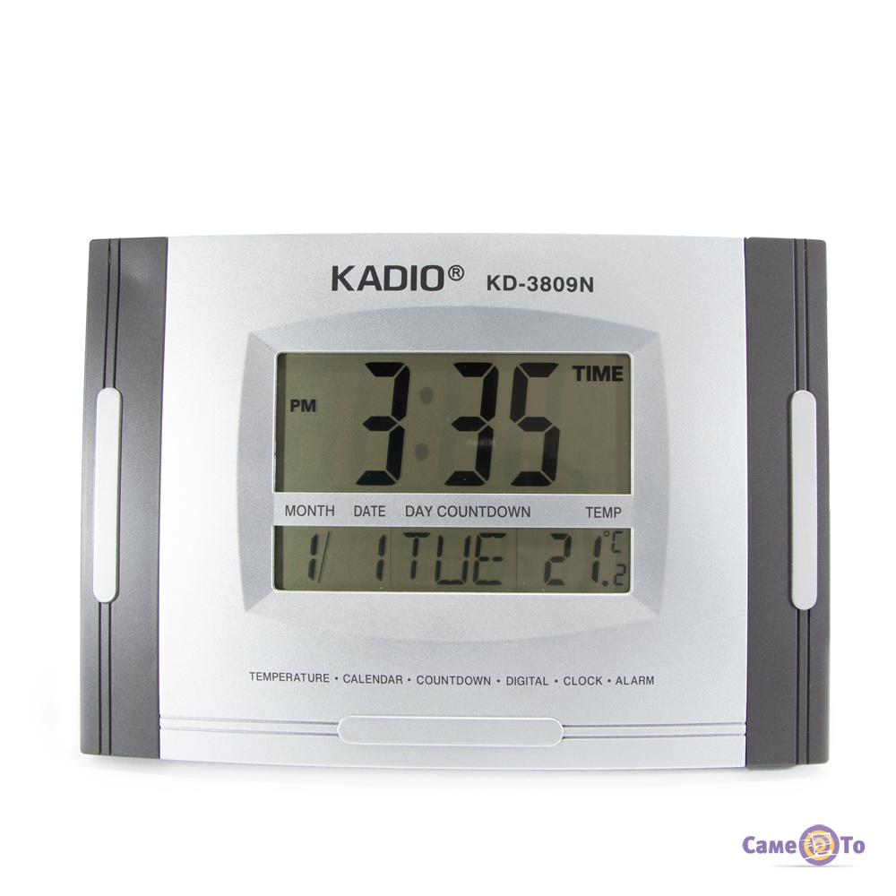 Цифровий електронний годинник настільний обладнаний п'ятьма комфортними малогабаритними кнопками для управління. Він дає можливість швидко і просто вивести на циферблат всю необхідну інформацію. У верхній частині екрану досить великими цифрами вказуються години / хвилини, нижня ж частина в свою чергу розповідає про температуру в кімнаті і дату (день вказується англійською). Такий режим з температурою дуже важливий для сімей з маленькими дітьми. Більше не потрібно окремо купувати кімнатний термометр, з цією функцією незамінне впорається KD-3809 N.