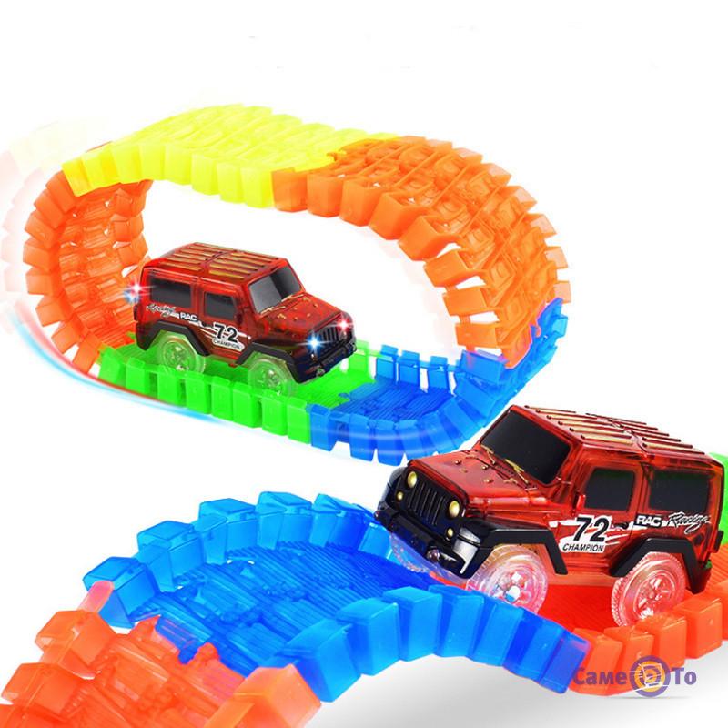 Дитяча іграшкова дорога Magic Tracks з двома машинками відноситься до того типу іграшок, які займають дитину протягом тривалого часу. Адже особливість траси полягає в тому, що її можна постійно видозмінювати: