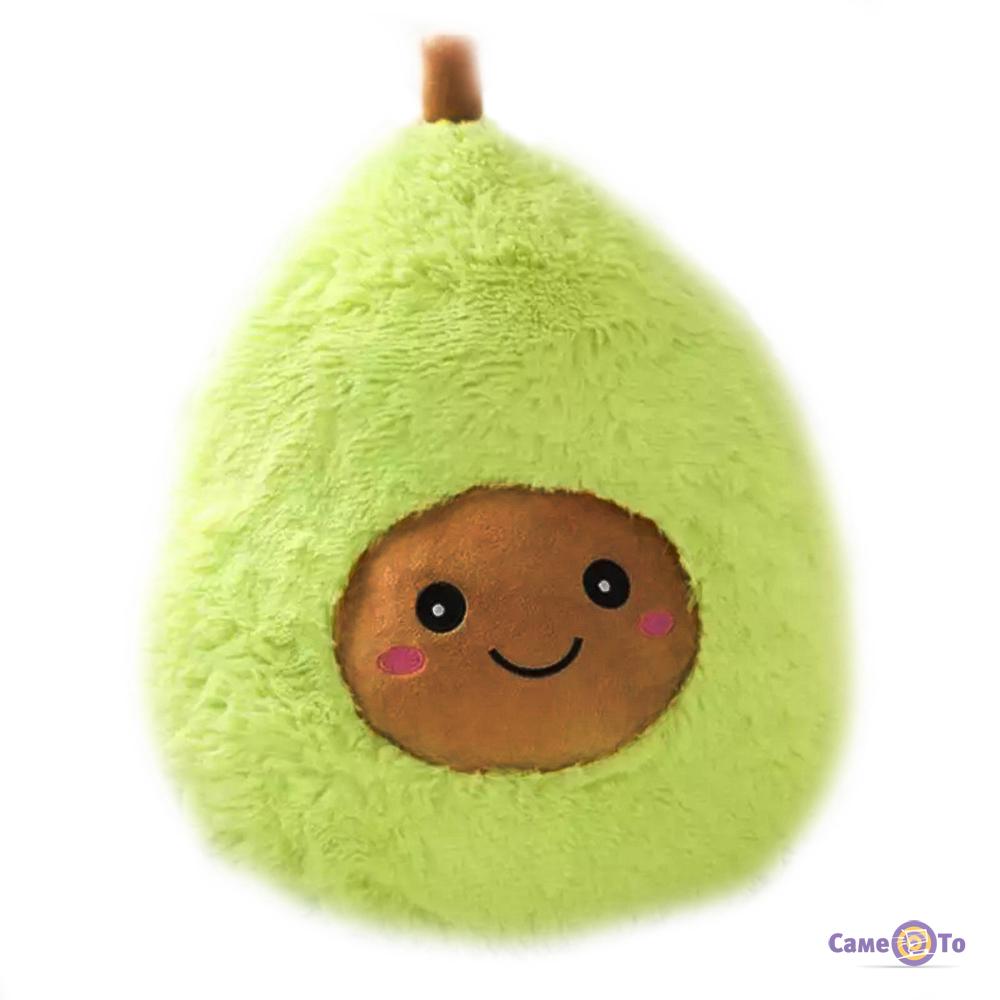 Авокадик полностью соответсвует фотография. В жизни выглядит даже лучше. Цвета очень насыщенные. Скорее всего данный авокадо будет использоватся не только как прикольная игрушка, но и как мягкая подушка