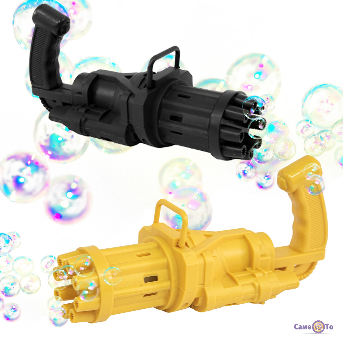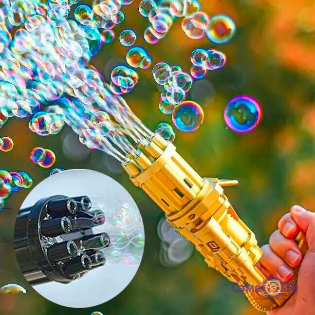 Якщо ви не знаєте що подарувати дитині на день народження, пропонуємо звернути увагу на іграшку - генератор мильних бульбашок. Зроблено генератор мильних бульбашок у вигляді дитячого кулемета. Має два кольори, жовтий і чорний. Така іграшка генератор мильних бульбашок безсумнівно порадує як хлопчиків так і дівчаток. Всі діти дуже люблять мильні бульбашки, а при натисканні на одну кнопку в такому кулеметі вони зможуть побачити відразу безліч мильних бульбашок. Генератор мильних бульбашок для дітей має 8 отворів для видування великої кількості бульбашок одразу. Машина для мильними бульбашок продається без додаткового заливного набору самої рідиною.