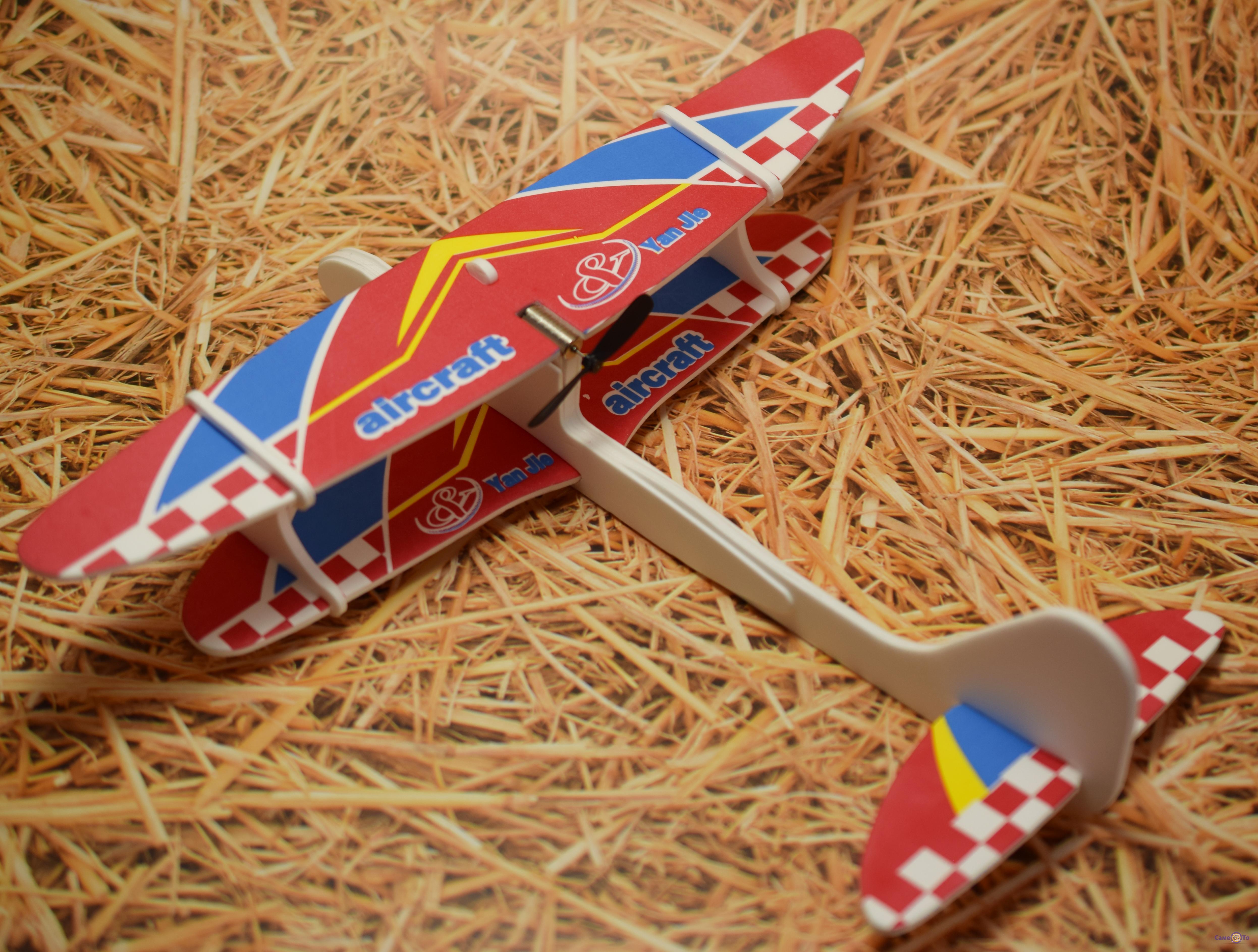 Дитячий ігровий літак Aircraft являє собою конструкцію з 6 частин. Виготовлений з супер легкого і безпечного пінопласту. Оснащений мініатюрним електромоторчиком, який включається за допомогою однієї кнопки. Щоб запустити літак, досить одного легкого руху, яке під силу навіть маленькій дитині (іграшка призначена для дітей старше 3 років).