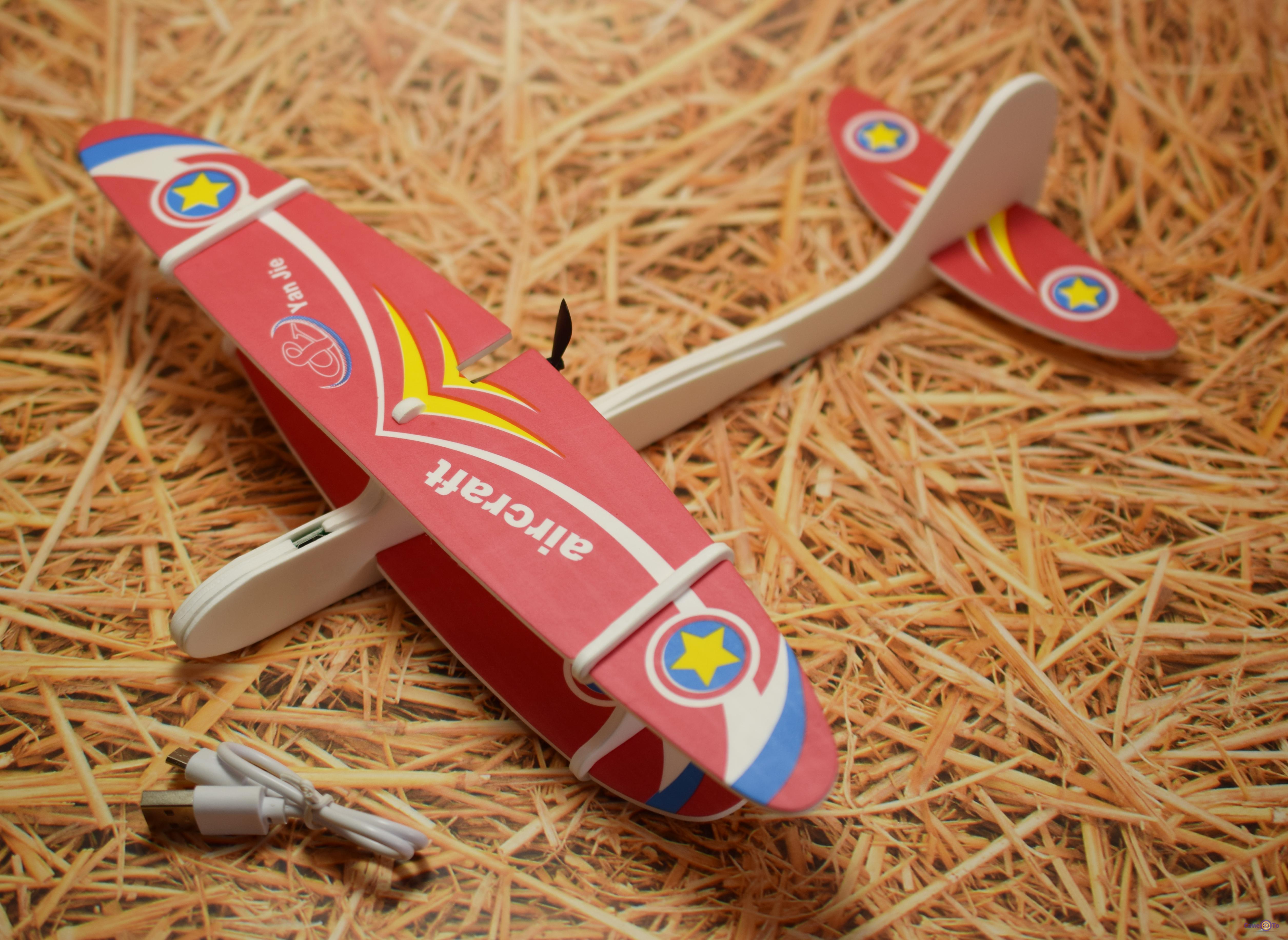 Крила і хвіст електрольота з пінопласту оформлені в барвистому дизайні, що безсумнівно порадує дитину. Стежити за польотом кольорового літака набагато цікавіше! А якщо метати відразу кілька апаратів, можна отримати ефектне планер шоу, яке запам'ятається не тільки малюкові, але і дорослим. Літак на USB Aircraft - відмінний подарунок для людей будь-яких вікових категорій. Діти і батьки можуть влаштовувати змагання, порівнюючи свої метальні літаки в висоті підйому і тривалості польоту. Немає необхідності чекати вітряної погоди, як це було з повітряними зміями. Літак з пінопласту Aircraft завжди готовий до роботи. Метати його можна в приміщенні з високими стелями, але краще робити це на відкритій місцевості, де немає перешкод для переміщення планера.