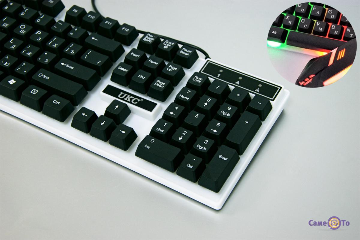 Комп'ютерна клавіатура з підсвічуванням стане чудовим подарунком для дитини, друга або другої половинки, а також гарним придбанням для себе. Будь-який геймер мріятиме саме про неї. У комплекті з клавіатурою ви придбаєте ігрову мишку та море незабутніх емоцій. Клавіатура для комп'ютера сумісна з усіма ОС, має кабель довжиною 1.5 метра та зручні, великі й м'які клавіші. Грати стане не лише цікаво, а й комфортно.