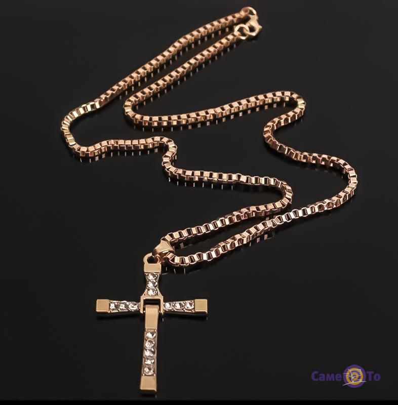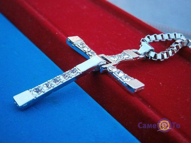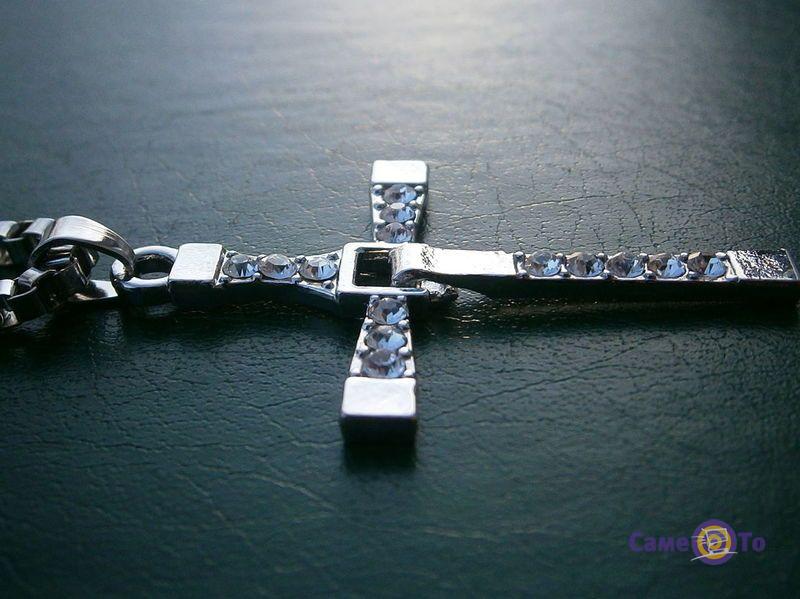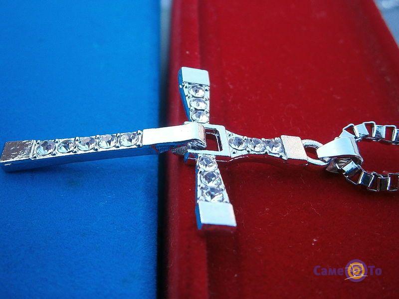 Хрест Домініка Торетто з ланцюжком зроблений зі сплаву високолегованої сталі (титану) білого кольору. До складу металу не входять токсичні хімічні елементи, тому він не викликає роздратування при доторканні до шкіри. Основа прикрашена цирконієвим камінням, надійно прикріпленим до корпусу.