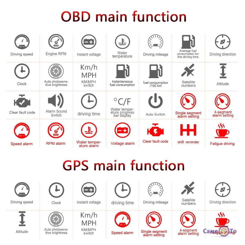 Скачати інструкцію до товару: "HUD проектор на лобове скло в авто HUD-C800 ODB2+GPS проекція на лобове скло"