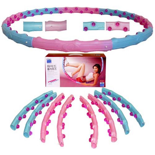 Масажний обруч Wide Hoop призначений для занять фітнесом та аеробікою в будь-якому зручному місці, будь-то спортивний зал або міська квартира. Конструктивно обруч складається з 8 сегментів, які можна легко зібрати і розібрати у разі потреби. Матеріали, з яких виготовлений обруч - високоякісні поліетилен і силікон, що дозволяє легко підтримувати гігієнічну чистоту. Масажний ефект здійснюється за рахунок 64 масажних кульок, по 8 штук на кожному сегменті. Вага обруча 1,25 кг. Діаметр - 110 см.