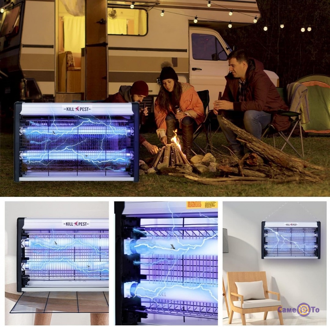 Електроловушка приваблює комах ультрафіолетовим світлом і миттєво ліквідує їх за допомогою безпечної електросітки. Ідеальна для використання вдома, на даці, у кафе, на складі або в саду.