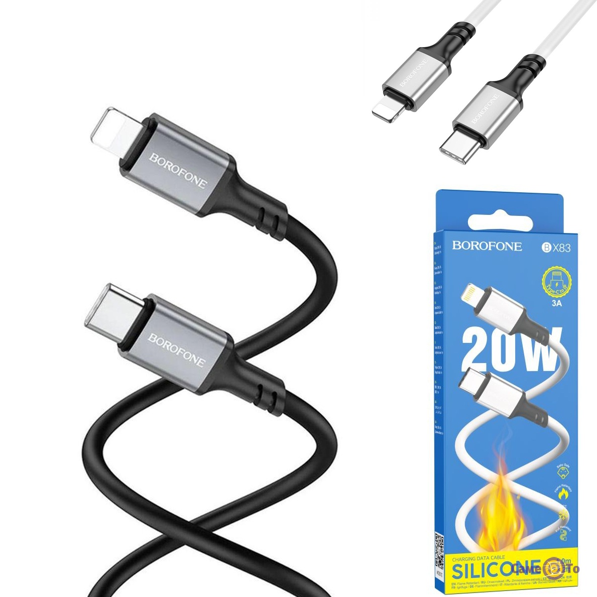 Кабель для айфону Type-C Lightning, Borofone BX83 PD 20W/3A Silicone