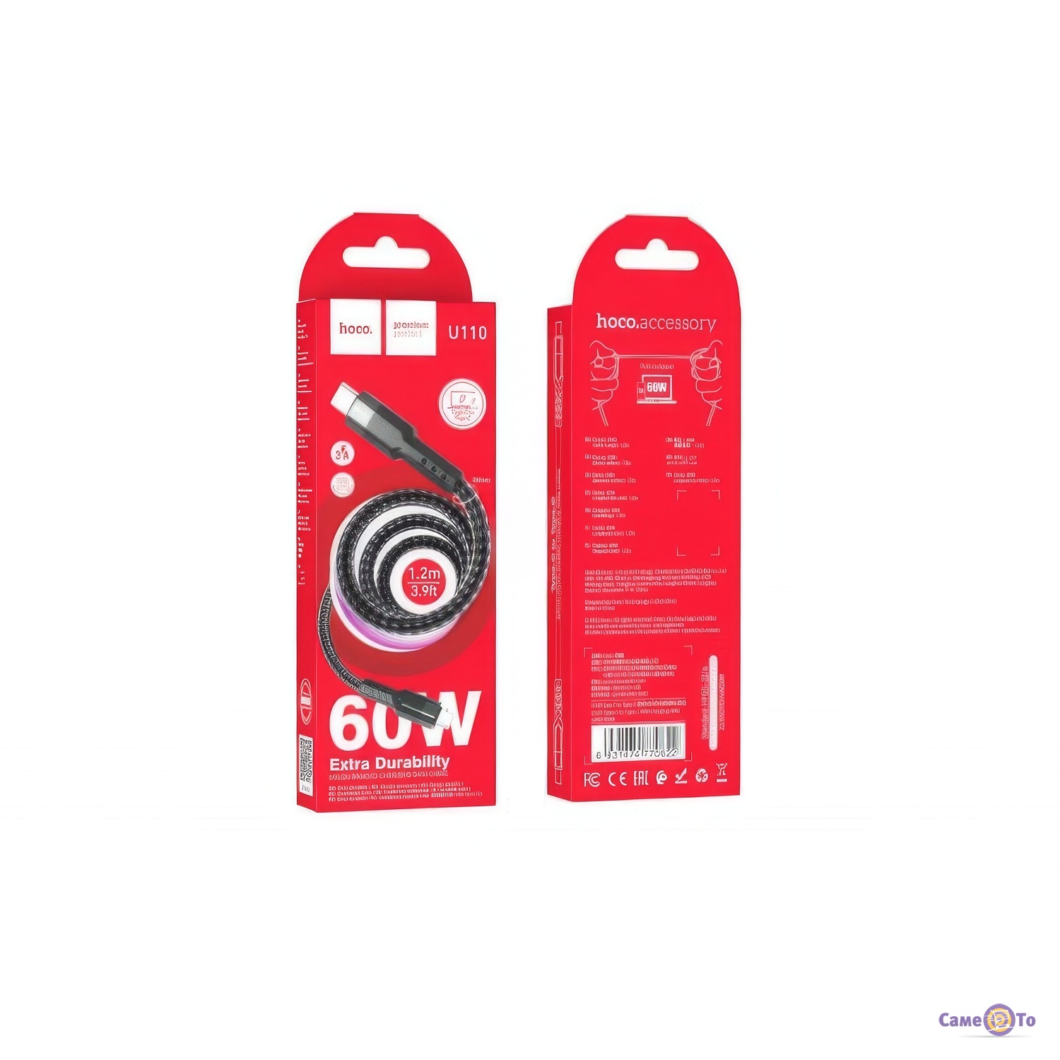 Кабель для телефону Type-C до Type-C Hoco U110 60W, 1.2 метри - ідеальний вибір для швидкої та ефективної зарядки ваших пристроїв.