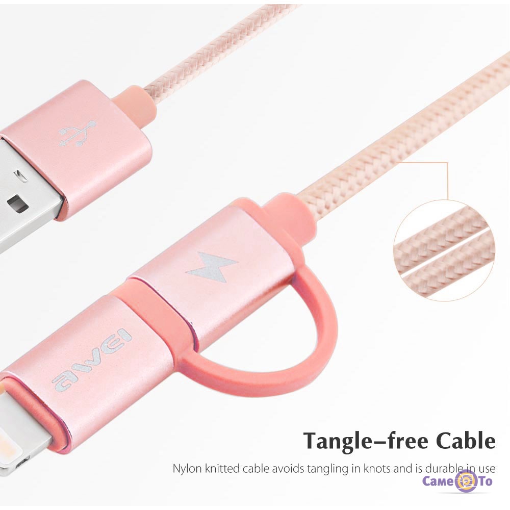 Кабель для зарядки 2в1 "Awei CL-930C" 20 см, провід Lightning та Micro USB