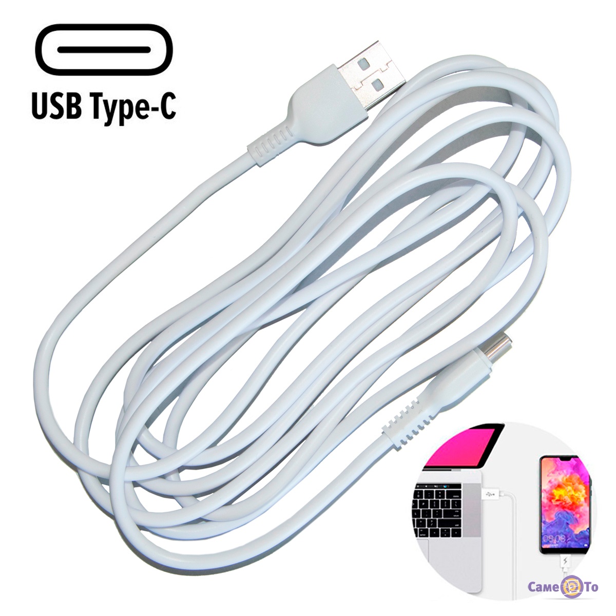 Білий колір кабелю надає йому стильного і сучасного вигляду, а також робить його більш помітним в умовах недостатнього освітлення.