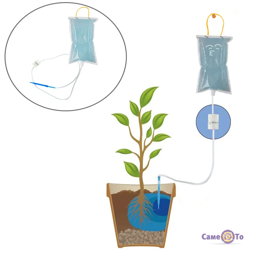 • Система полива - 1 шт. (пакет для полива, коннектор-колышек, шнурок для подвешивания, гибкая трубка, регулятор);