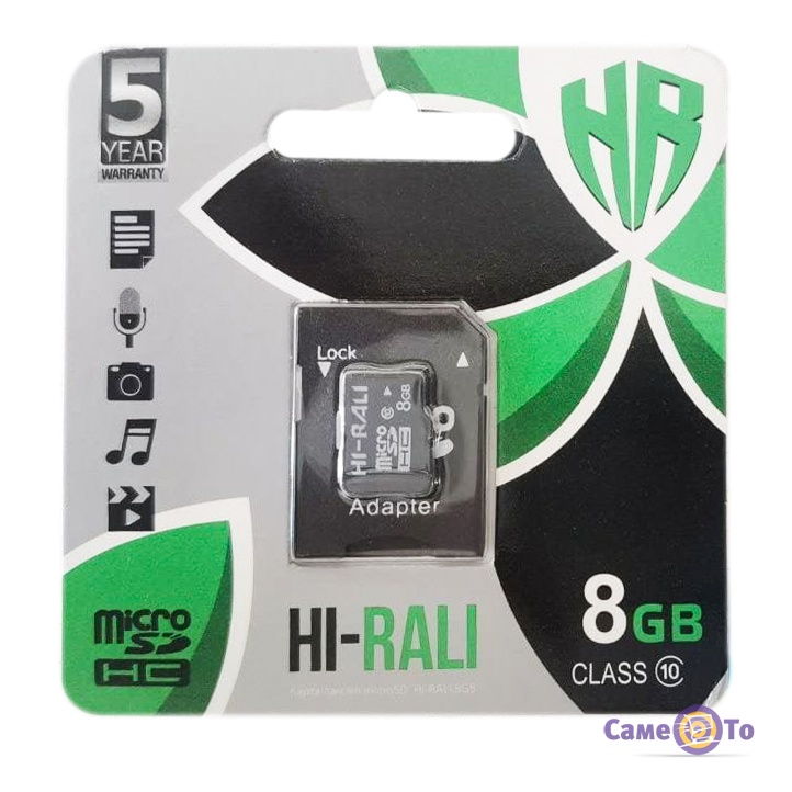 Якщо вам потрібна недорога та якісна карта пам'яті, то micro sd «Hi-Rali» якраз такий варіант. Ця sd-карта на 8 Гб, продається в комплекті з адаптером. Використовуватися може як картка пам'яті для телефону, картка пам'яті для фотоапарата, картка пам'яті для відеореєстратора тощо.