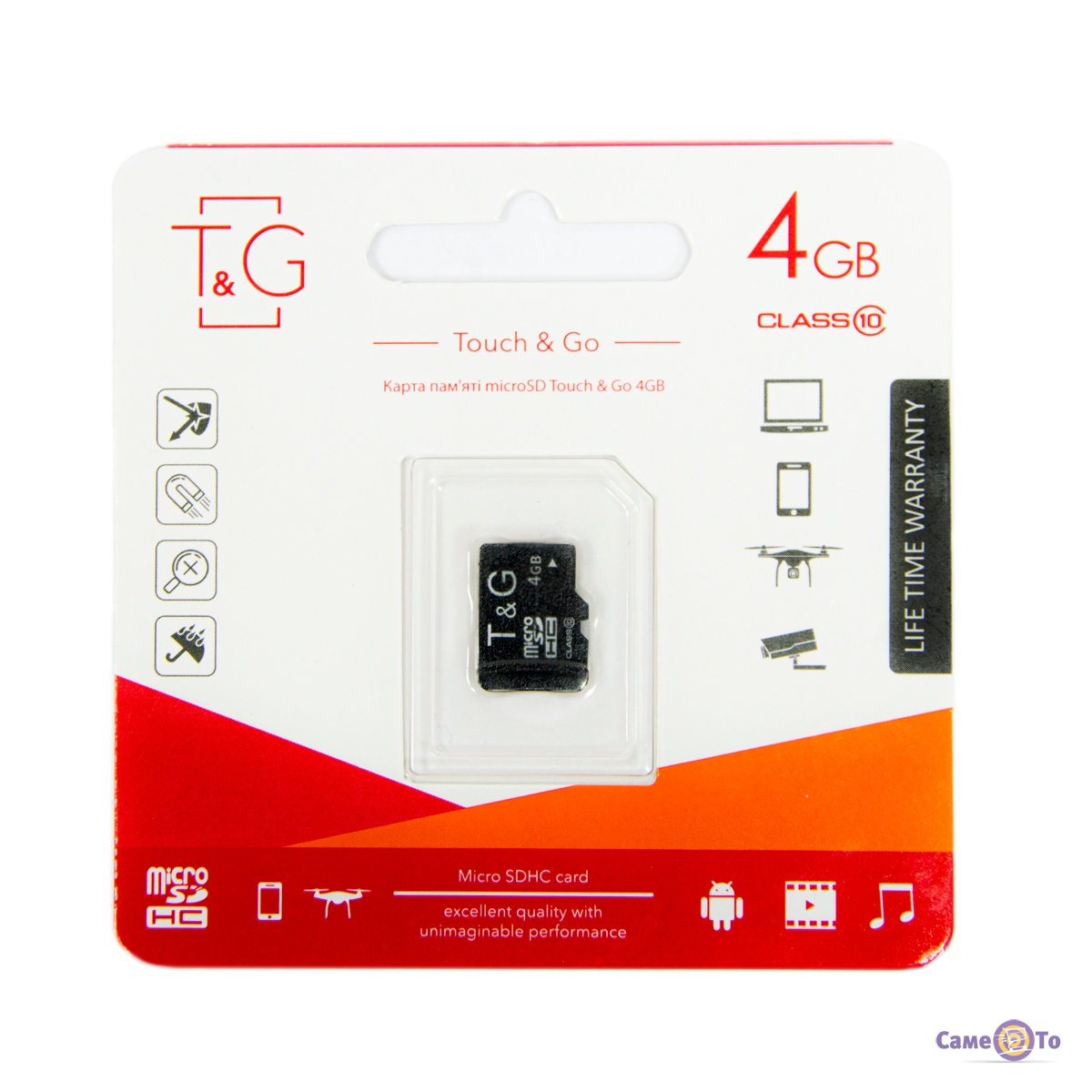Sd карта Touch&Go легко підключається через роз'єм корпусу мобільного телефону, відеореєстратора і т.д. Карта пам'яті 4 гігабайти – зручний спосіб розвантажити невеликий об'єм постійної пам'яті пристрою.
