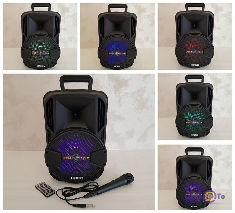 Ця колонка портативна вже продається в комплекті з мікрофоном та пультом. Працює завдяки вбудованому потужному акумулятору. При повному заряді бездротова колонка радуватиме вас роботою протягом 5 годин.