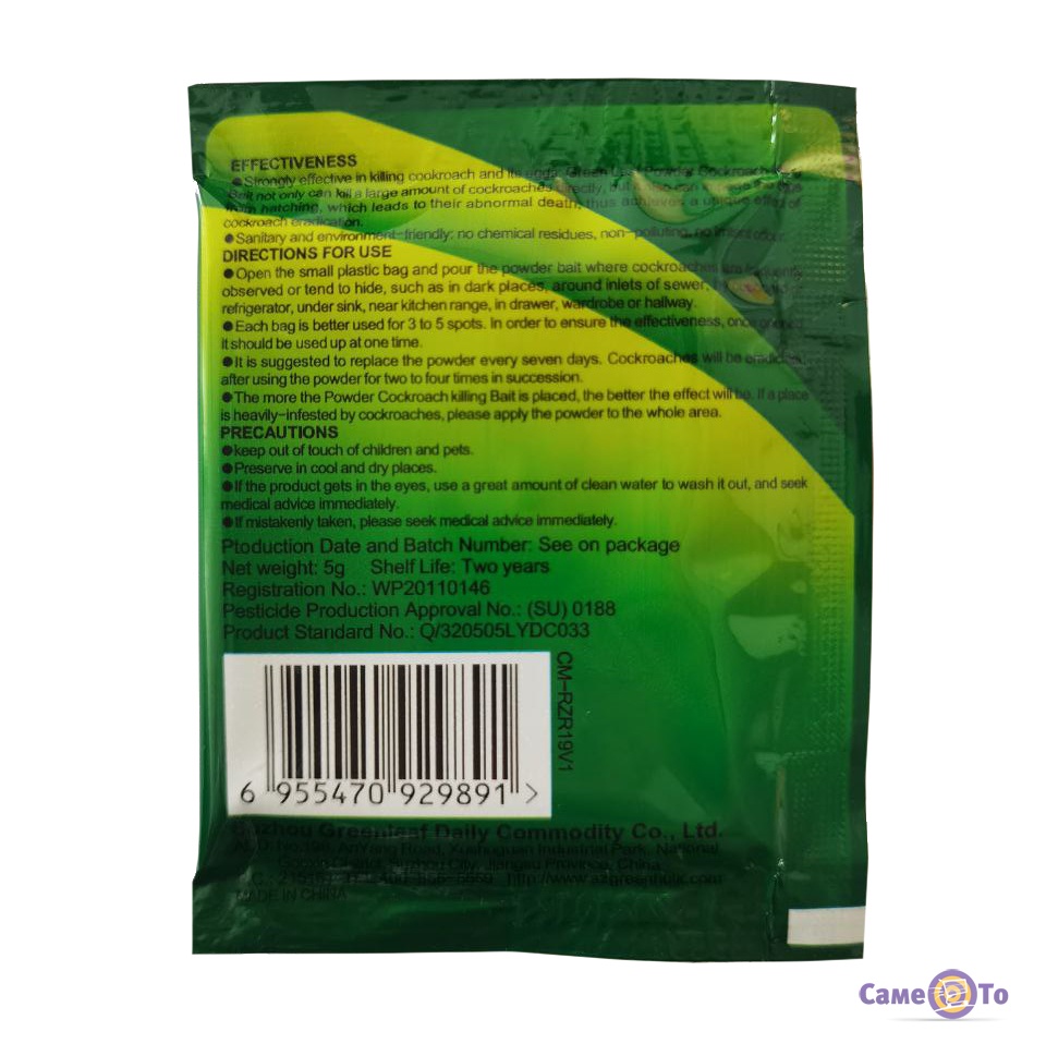 Довгостроковий захист: Green Leaf Powder Cockroach Killer діє не тільки на видимих комах, але і на яйця та личинки, запобігаючи їх повторній появі.