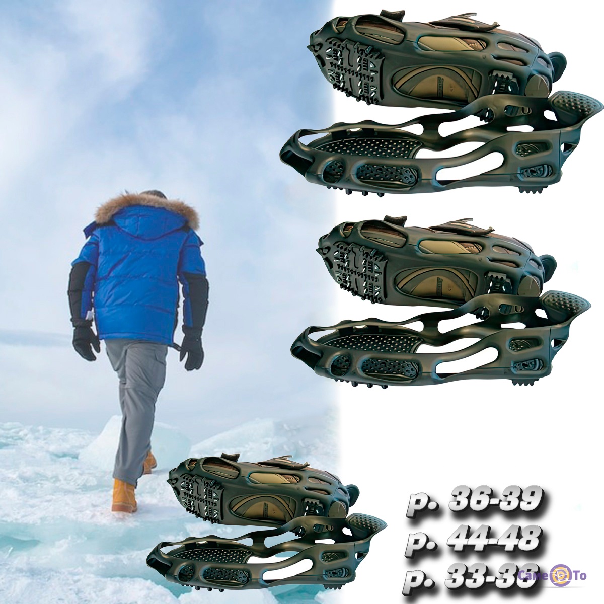 Розмір льодоступів необхідно вибирати відповідно до розміру взуття, льодоступи розтягуються.