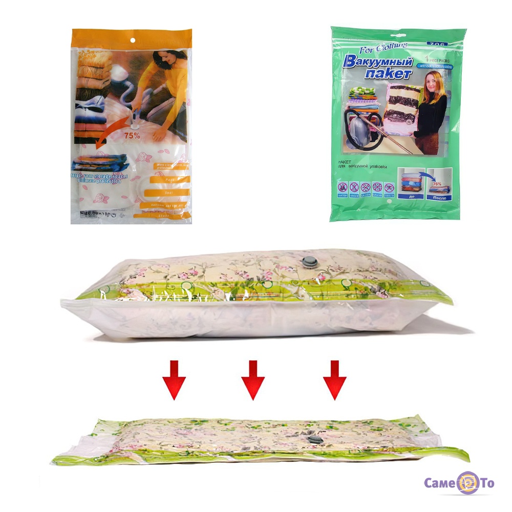 Комплект вакуумних пакетів 80x110 см та 70x100 см - ваш вірний супутник в організації зберігання одягу та речей. Ці вакуумні мішки призначені для зручного та практичного збереження одягу в оптимальних умовах.