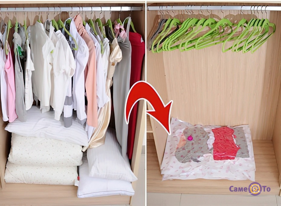 З їх допомогою ви можете значно заощадити простір у вашій шафі чи гардеробі. Просто покладіть вакуумні пакети з одягом, використовуйте пилосос або насос для видалення повітря через спеціальний клапан, і ви здивуєтеся, наскільки компактно та акуратно ваш одяг буде упакований.