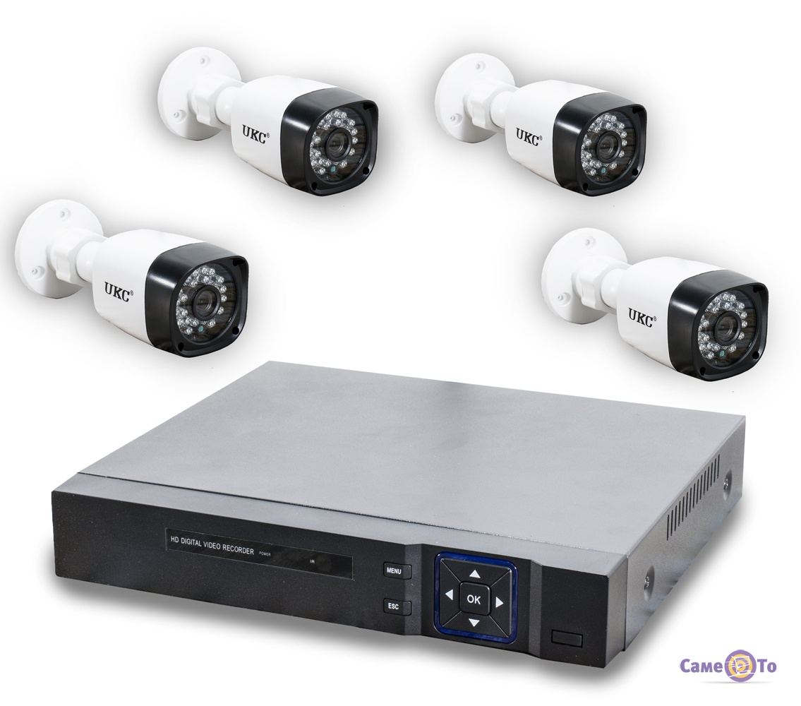 У комплект відеоспостереження UKC CAD-D001-4CH входить DVR-регістатор і чотири IP камери, які передають інформацію в цифровому форматі з використанням мережевого протоколу. Такий комплект підійде як для вуличного використання, так і для внутрішнього.