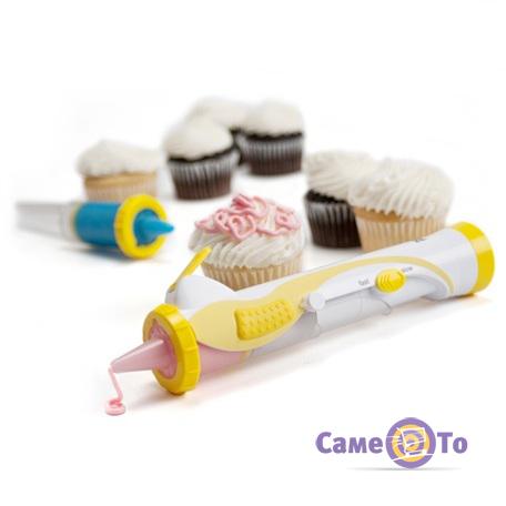 Шприц работает от батареек, есть регулировка скорости подачи крема, работа с таким инструментом чрезвычайно комфортна. Frosting Deco Pen имеет компактные размеры, не занимает много места в кухонном пространстве. Приятный бонус для покупателей – минимиксер и три контейнера для смешивания крема в комплекте. За устройством легко ухаживать, его можно мыть как вручную, так и при помощи посудомоечной машины.
