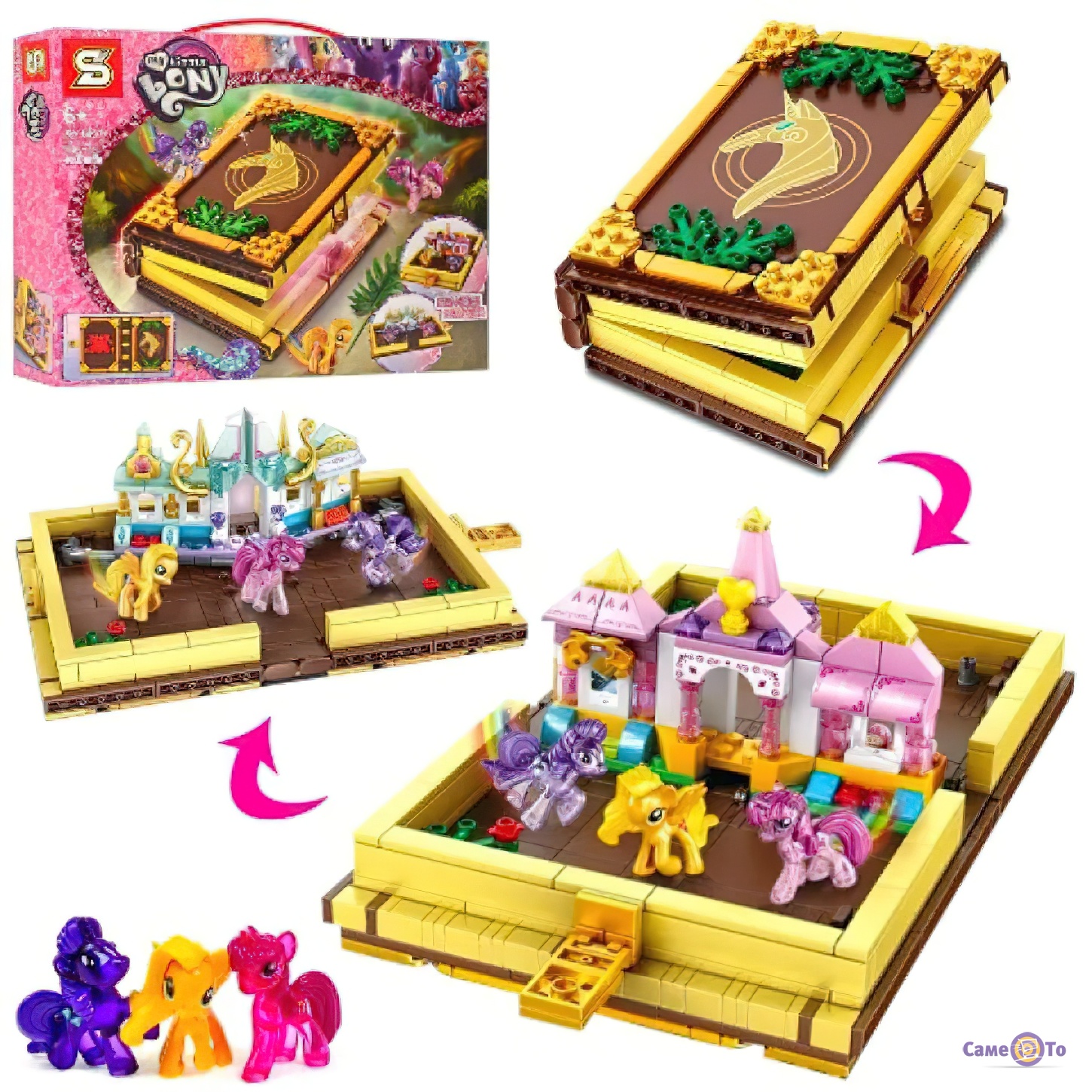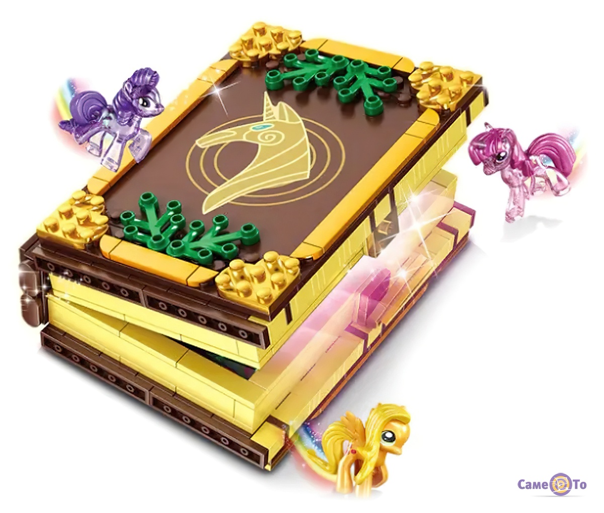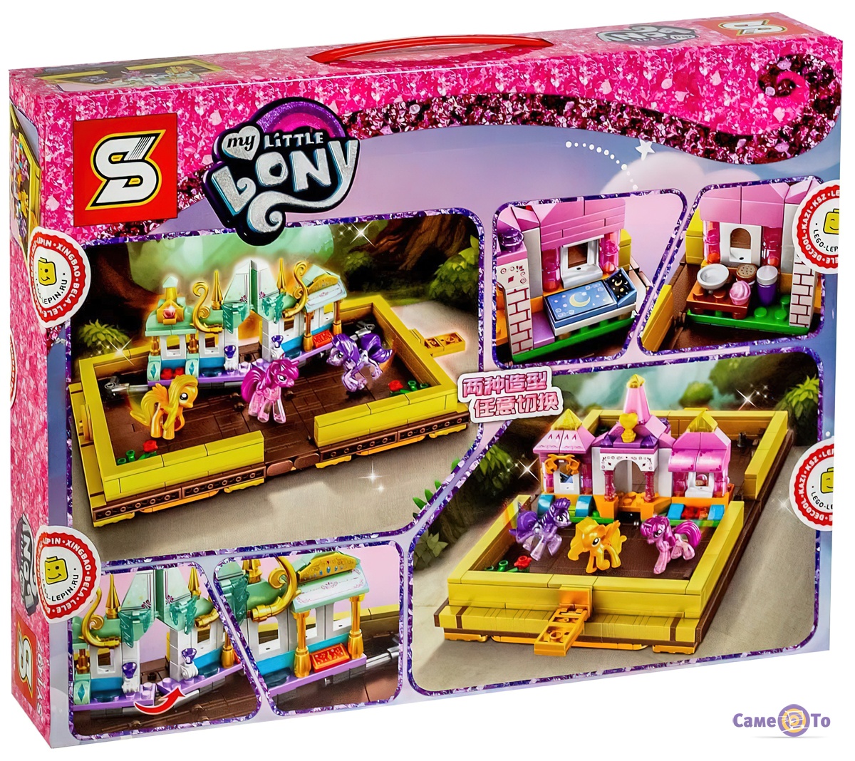 Набор «My Little Pony» представлен в виде небольшой книжечки, состоит из более 500-та деталей. Конструктор для детей в себе содержит три фигурки персонажей: Рэрити, Эпплджек, Пинки Пай из мультсериала «Friendship is Magic», в котором рассказывается о жизни пони.