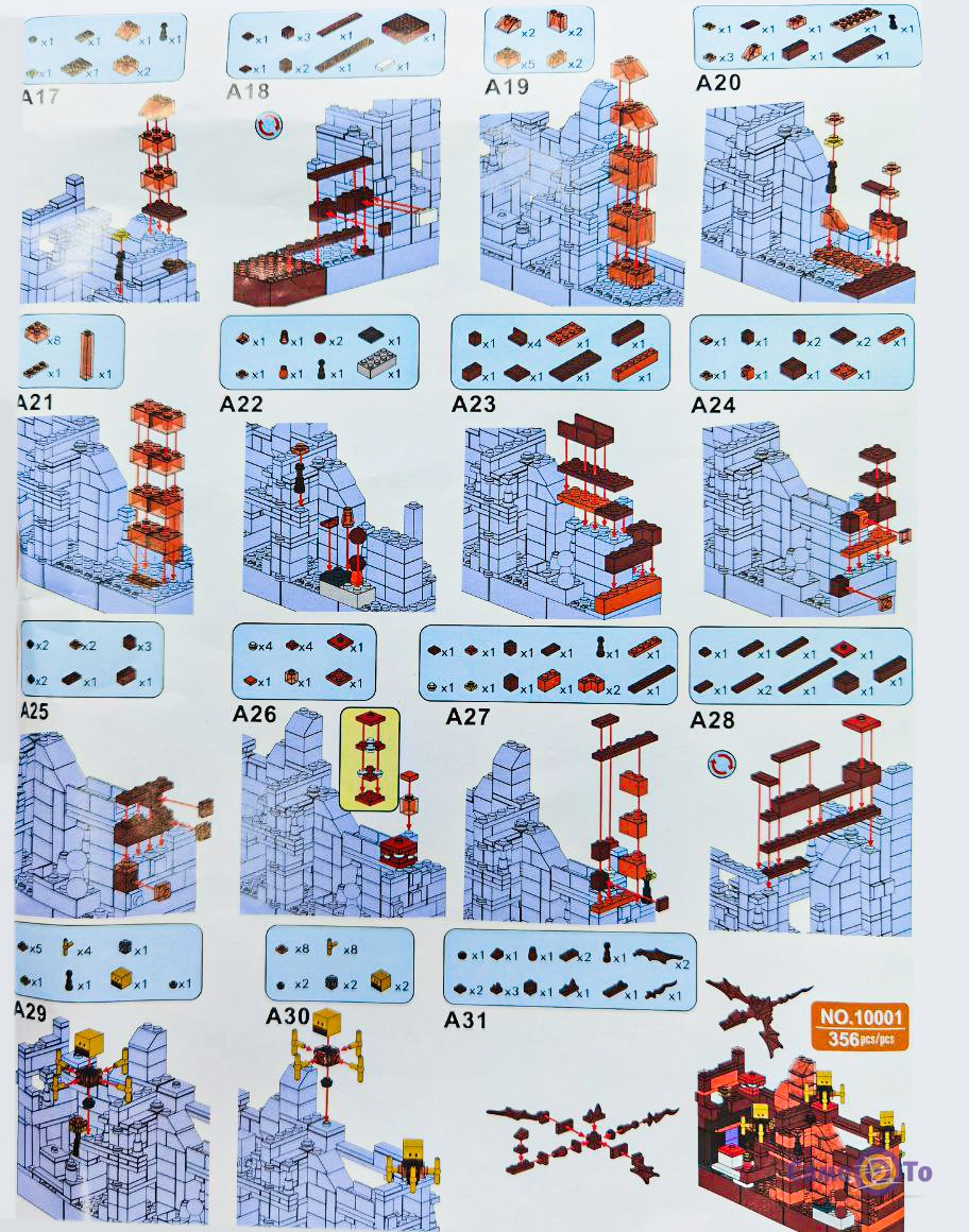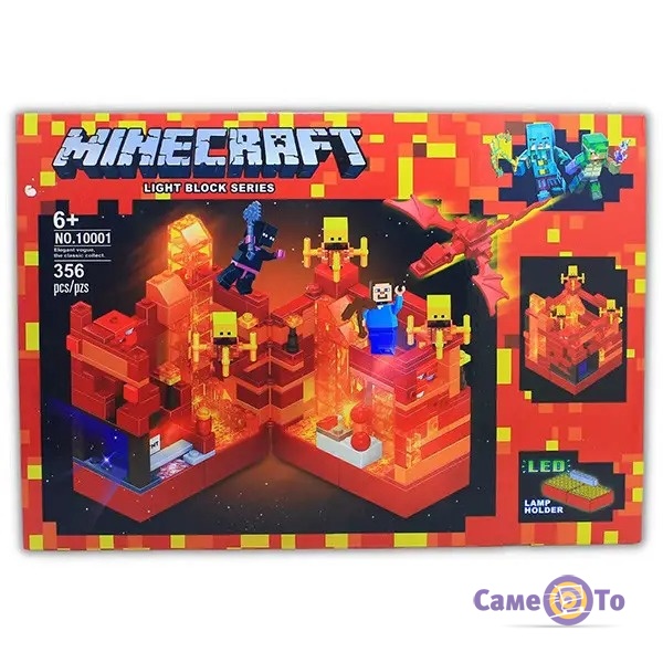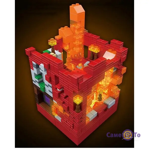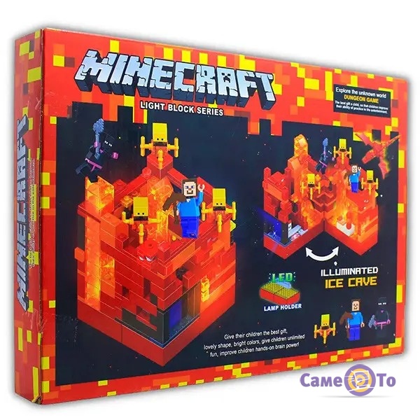 Цей конструктор minecraft складається з 356 елементів, що виготовлені з якісного різнокольорового пластику. Всі деталі надійно поєднуються між собою, дозволяючи відтворити картинку підземелля. Дітям найбільше подобається те, що це конструктор, що світиться, тобто лед-блоки світяться і ефектно виглядають у вечірній час або у темному приміщенні.