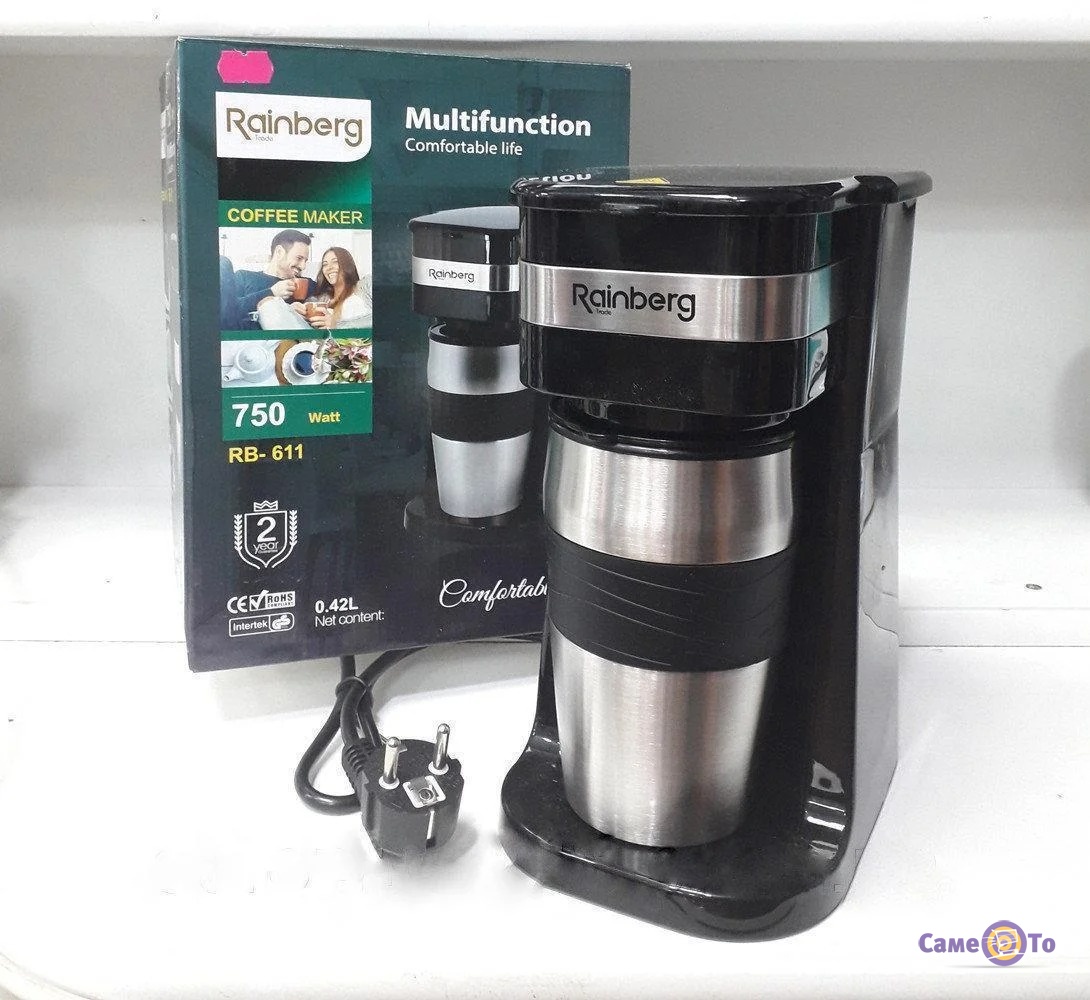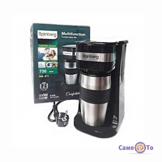 Кавоварка крапельна для дому - компактна електрокавоварка Rainberg RB-611 + термочашка