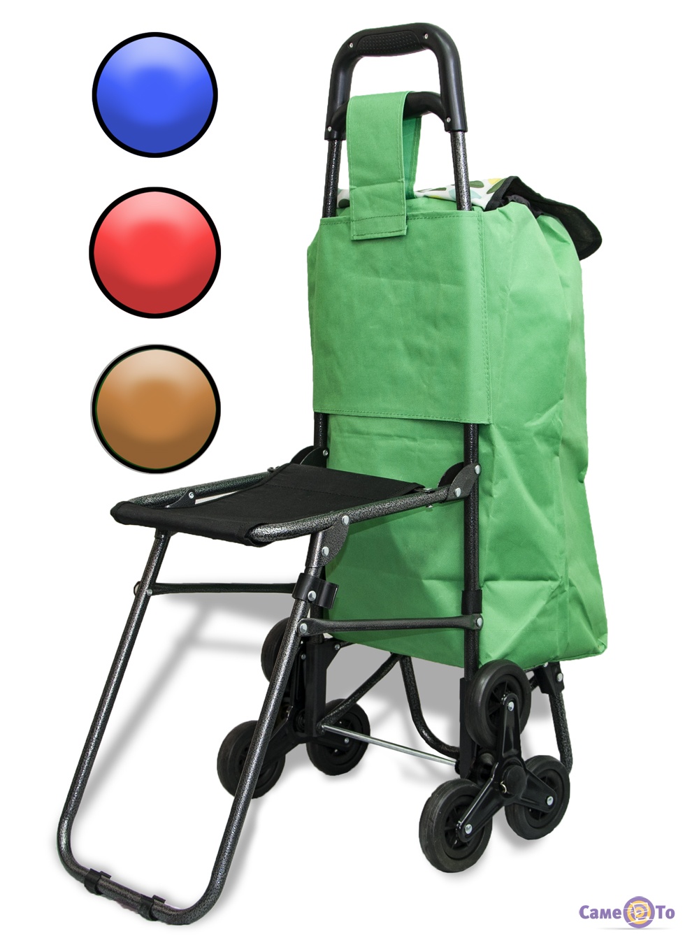 Інша цікава особливість моделі - наявність стільчика, на якому можна відпочити під час очікування транспорту або при поїздці на дачу. Сумка, з якої йде в комплекті візок, виготовлена з щільної і надійної тканини, здатної витримувати не тільки навантаження, але і тертя і перепади температур. Щільність сумки дає можливість виключити намокання речей всередині при настанні несприятливих погодних умов. Від вас буде потрібно лише правильно закрити сумку, щоб нічого всередину не потрапило.