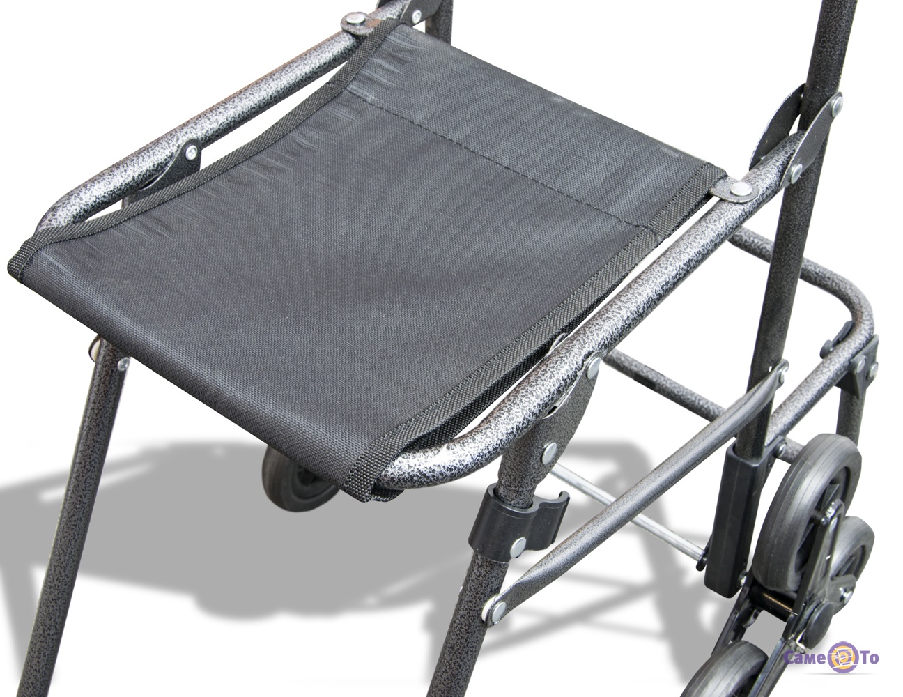 Інша цікава особливість моделі - наявність стільчика, на якому можна відпочити під час очікування транспорту або при поїздці на дачу. Сумка, з якої йде в комплекті візок, виготовлена з щільної і надійної тканини, здатної витримувати не тільки навантаження, але і тертя і перепади температур. Щільність сумки дає можливість виключити намокання речей всередині при настанні несприятливих погодних умов. Від вас буде потрібно лише правильно закрити сумку, щоб нічого всередину не потрапило.