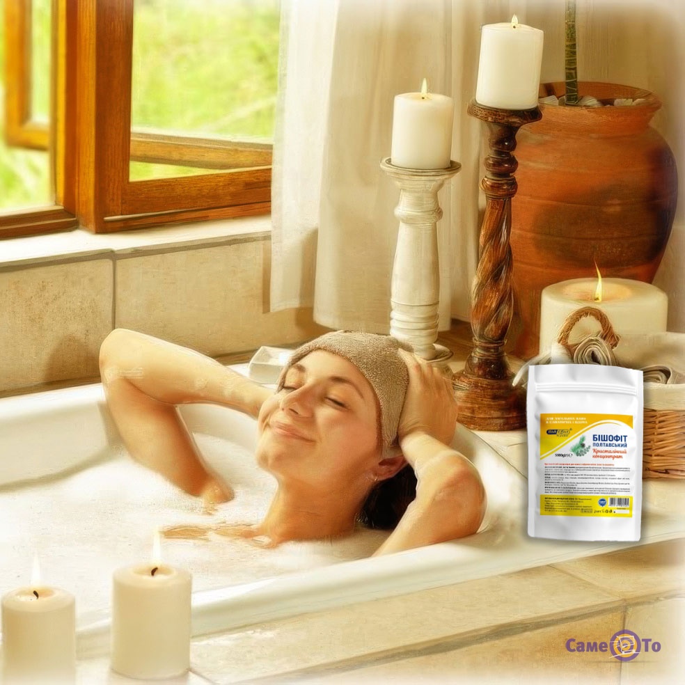 Бішофіт Полтавський — натуральний засіб для ванн, що поєднує цінні мінерали та ефірні олії для комплексного догляду за шкірою та створення атмосфери повного релаксу. Бішофітові ванни сприяють пом’якшенню, зволоженню та тонізуванню шкіри, надаючи їй природного доглянутого вигляду.