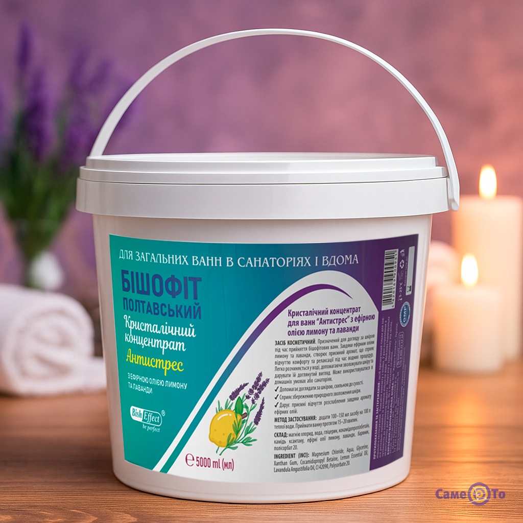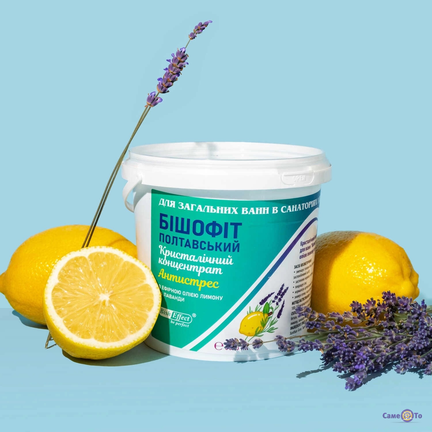 Особливість цього концентрату — поєднання бішофіту з ефірними оліями лимона і лаванди. Лимон дарує шкірі відчуття свіжості, допомагає підтримувати її тонус і наповнює ванну яскравим цитрусовим ароматом. Лаванда відома своїм ніжним квітковим запахом із заспокійливими нотами, який сприяє розслабленню, відновленню емоційного балансу та покращенню сну.