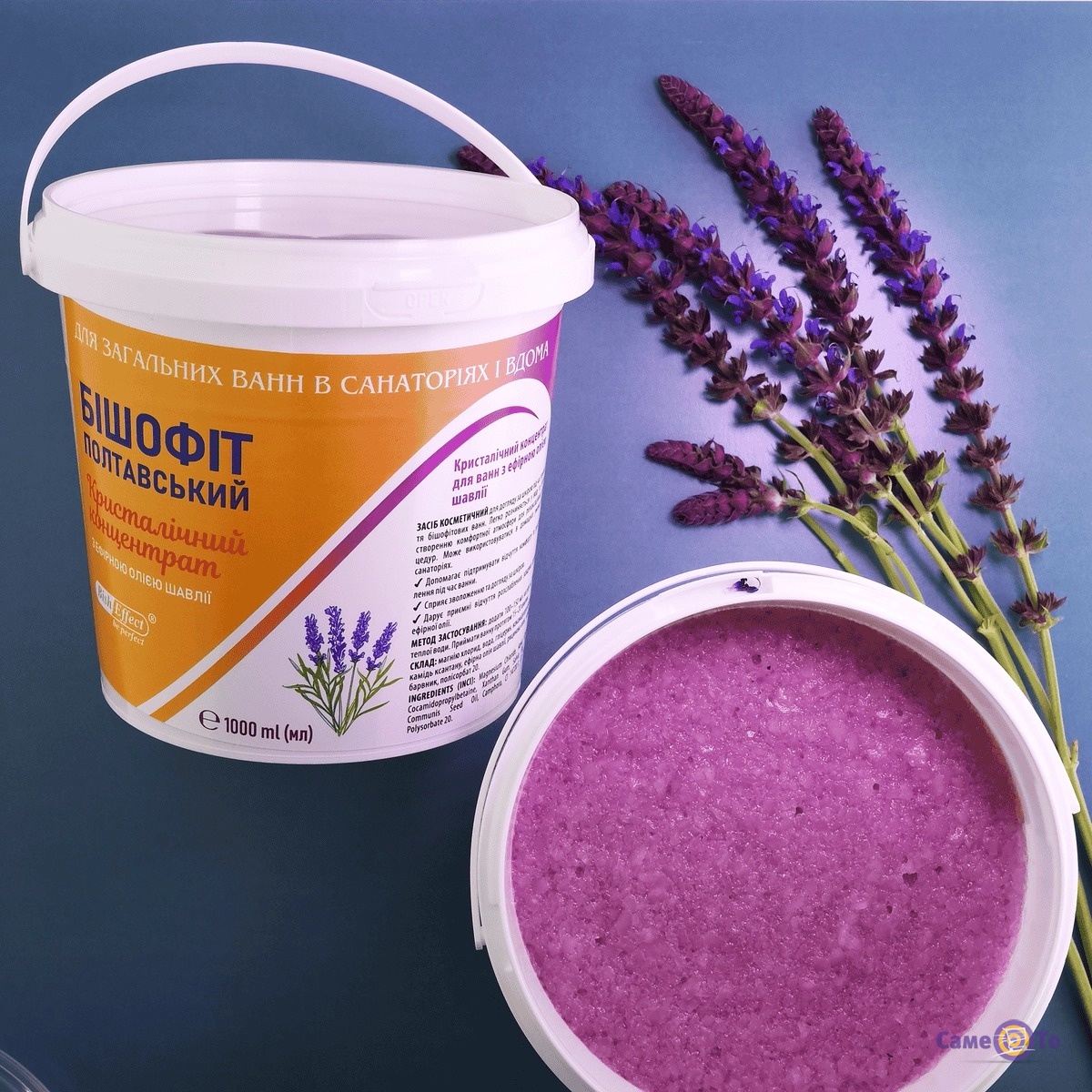 Кристалічний концентрат для ванн із ефірною олією шавлії 1000 мл — це натуральний засіб для догляду за шкірою та розслаблення. У основі продукту лежить природний бішофіт із Полтавського родовища, багатий магнієм і мікроелементами, який м’яко доглядає за шкірою, пом’якшує її та підтримує природний рівень зволоження. Концентрат легко розчиняється у воді, роблячи ванну приємною та комфортною.