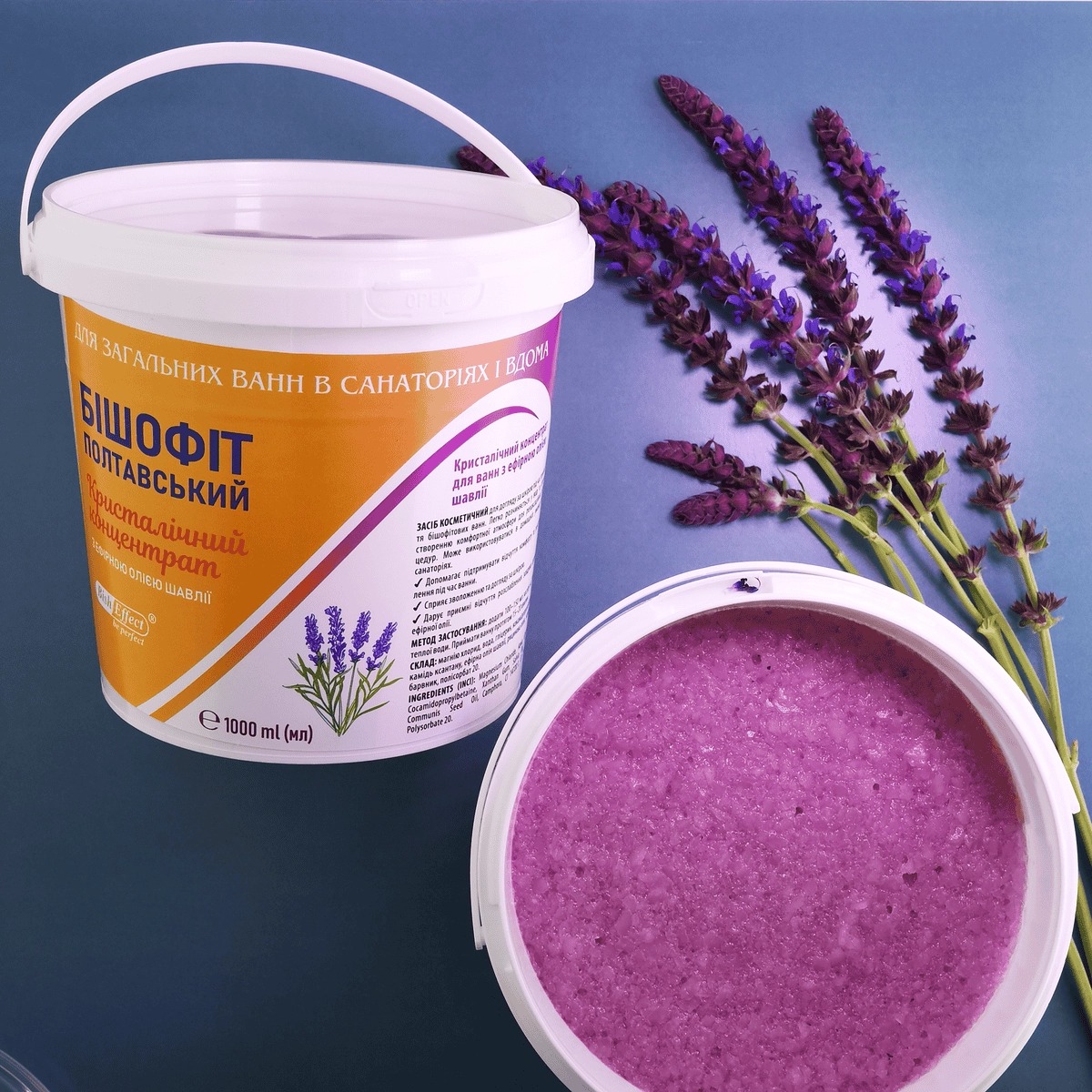 Кристалічний концентрат для ванн із ефірною олією шавлії 1000 мл — це натуральний засіб для догляду за шкірою та розслаблення. У основі продукту лежить природний бішофіт із Полтавського родовища, багатий магнієм і мікроелементами, який м’яко доглядає за шкірою, пом’якшує її та підтримує природний рівень зволоження. Концентрат легко розчиняється у воді, роблячи ванну приємною та комфортною.