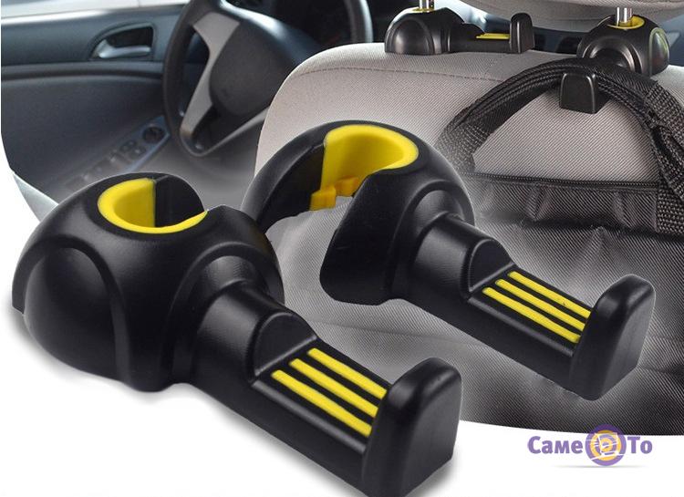 Гачки в машину виготовлені з міцного пластику. Кожен витримує вагу до 2,5 кг. Конструкція їх досить проста. З одного боку є отвір, за допомогою якого тримачі прикріплюються до кріплення підголівників, а з іншого - гачок, на який ви будете вішати речі.