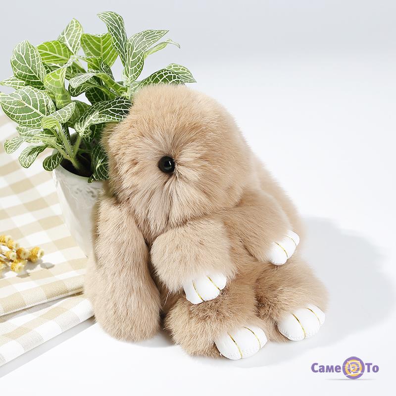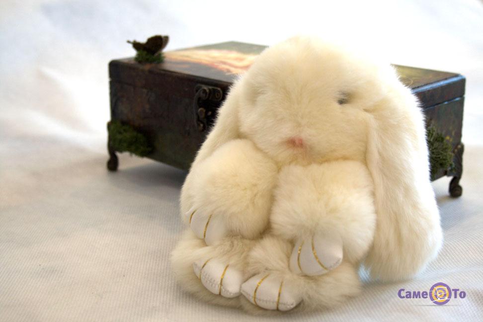 Хутровий зайчик схожий на натурального не тільки шерсткою. На кожній лапці виділений кожен пальчик, як у справжніх звірів, тому приємно навіть просто потримати зайця за лапу. А милі оченята-намистинки просто не можуть залишити байдужим нікого.