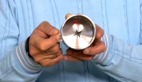 Оригінальні чашки даної моделі виготовлені з нержавіючої сталі, тому вони максимально захищені від можливих пошкоджень і не схильні до виникнення корозії від постійного впливу вологи і агресивних середовищ (кислоти, що знаходиться в соках, миючих засобів тощо). Внутрішній об'єм виробів становить 300 мл. На дні є невеликий вбудований пропелер з чотирма лопатями, який перемішує вміст. Живлення пропелера здійснюється за рахунок двох батарейок типу АА. Включення і відключення режиму перемішування проводиться за допомогою натискання кнопки, розташованої на ручці.