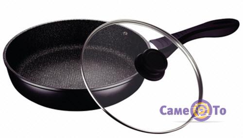 Кришка для Вок-сковороди зроблена з загартованого скла. Через прозору кришку Ви можете слідкувати за ступенем готовності страви і не знімати кришку кожен раз.