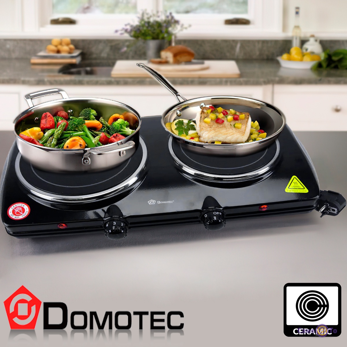 Кухонная плита электрическая стеклокерамика "Domotec MS-5852" двухконфорочная