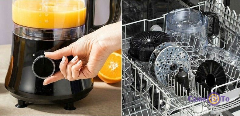 Для використання пристрою потрібно встановити в ємність обрану насадку і повернути реле. Також можна налаштувати одну з двох швидкостей або імпульсивний режим. Завдяки щільній кришці комбайна, можна не переживати, що ємність буде виливатися або висипатися назовні.