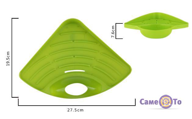 Органайзер для раковини забезпечує правильне і зручне зберігання миючих засобів для миття посуду. Він має форму трикутника, тому добре поміщається в кут раковини і кріпиться до її стінки за допомогою присоски. Розмір органайзера оптимальний, щоб не обмежувати робочого простору раковини, і в той же час помістити в собі всі необхідні миючі засоби: